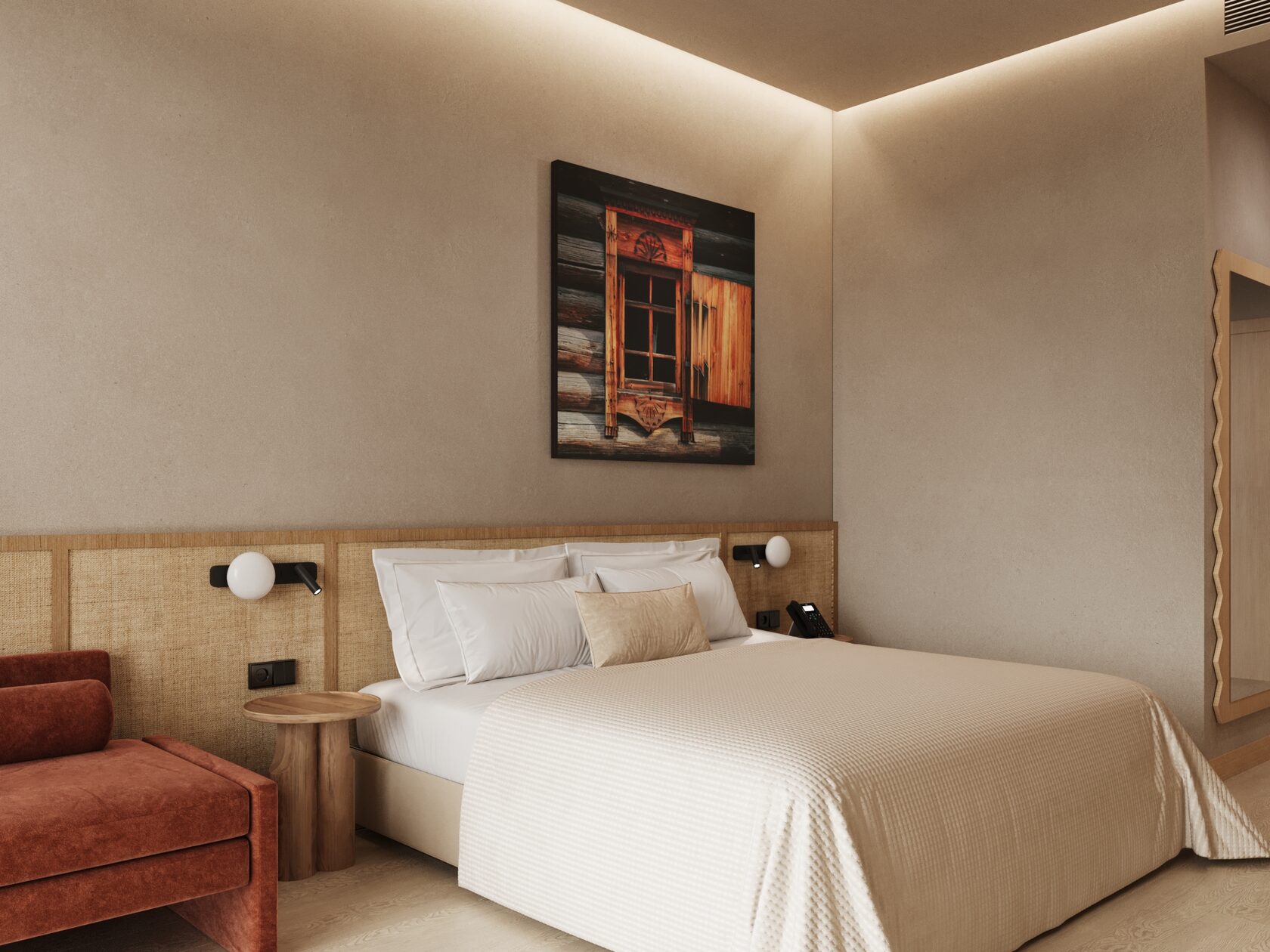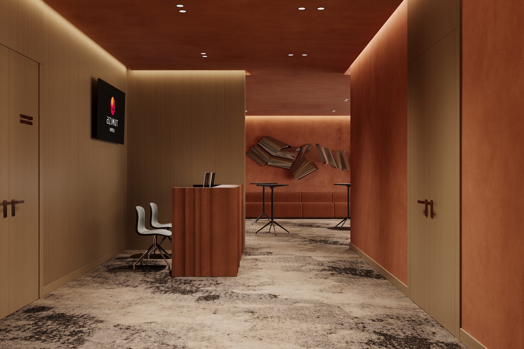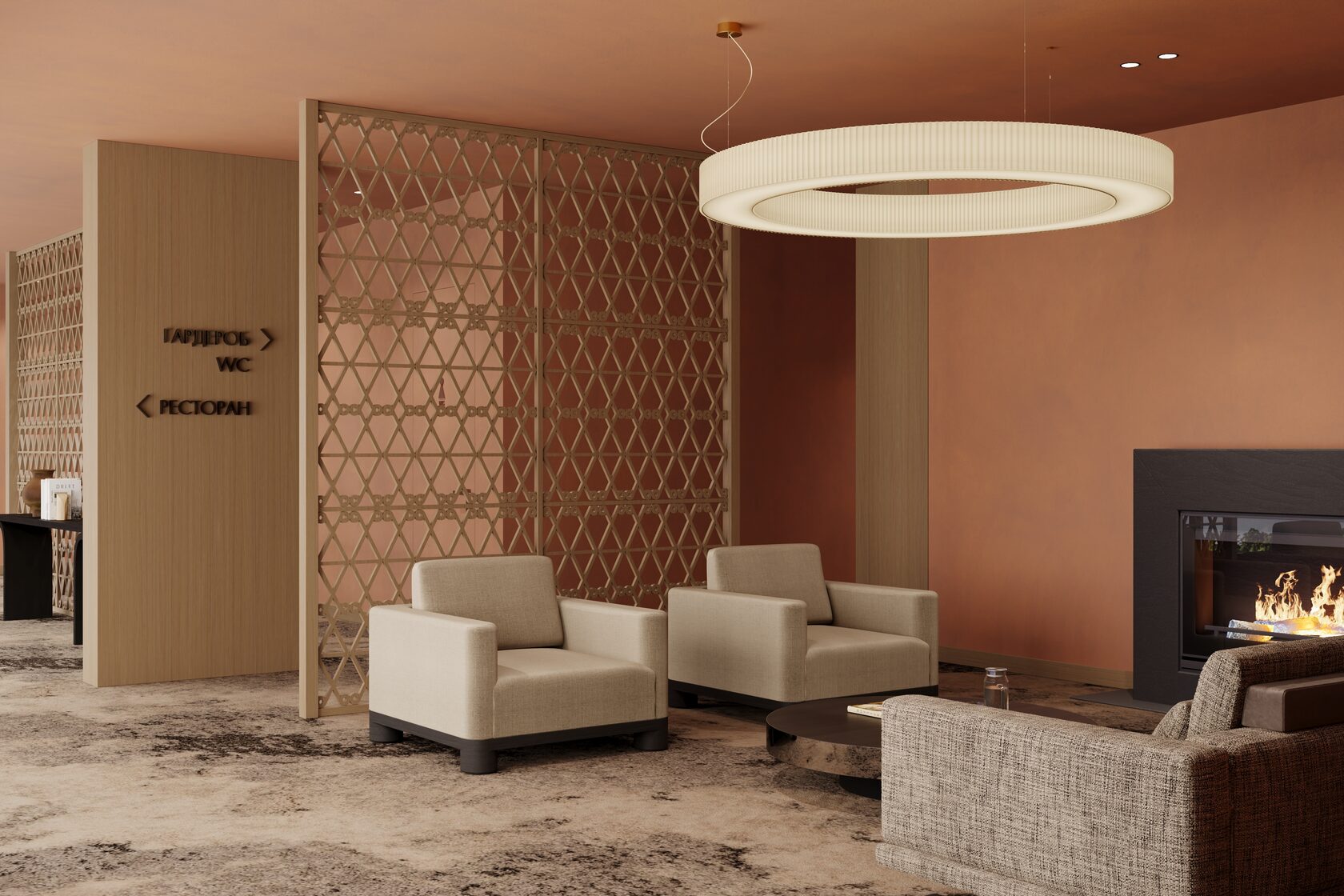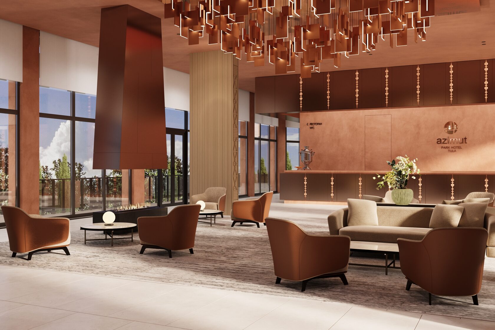 Концепция проекта интерьеров семейного отеля в Ясногорье. Отель 4* находится на берегу реки Оки в Ясногорском районе Тульской области и рассчитан на семейный отдых. Основное здание гостиницы на 100 номеров, в нем мы разработали лобби, лифтовые холлы, зоны конференц-залов, 2 ресторана, спортзал, а также типовые номера 4 различных категорий. Помимо этого были разработаны отдельно стоящие коттеджи, а также детский центр и павильон для мероприятий.