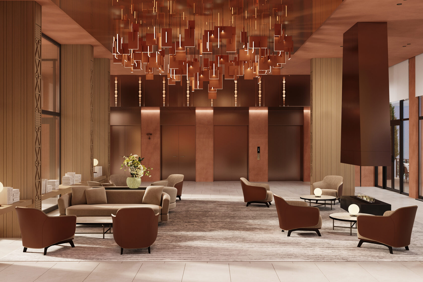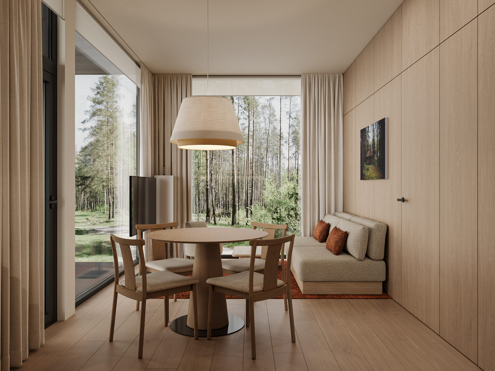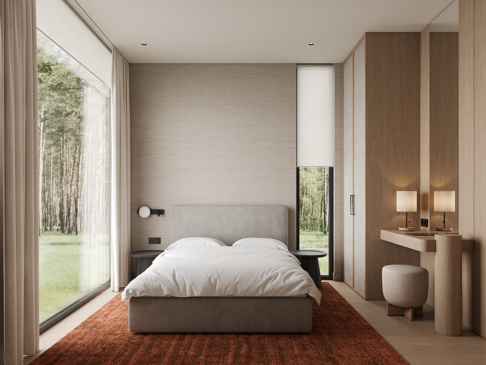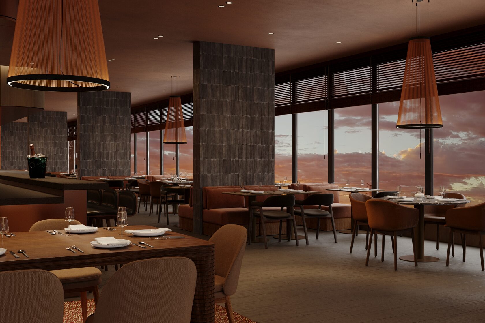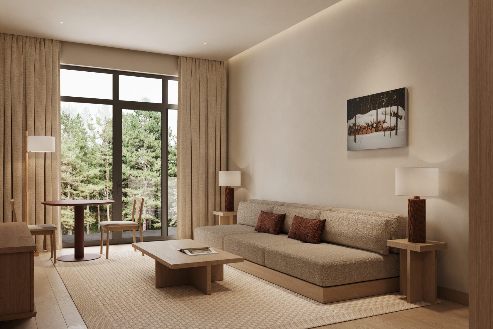 Концепция проекта интерьеров семейного отеля в Ясногорье. Отель 4* находится на берегу реки Оки в Ясногорском районе Тульской области и рассчитан на семейный отдых. Основное здание гостиницы на 100 номеров, в нем мы разработали лобби, лифтовые холлы, зоны конференц-залов, 2 ресторана, спортзал, а также типовые номера 4 различных категорий. Помимо этого были разработаны отдельно стоящие коттеджи, а также детский центр и павильон для мероприятий.