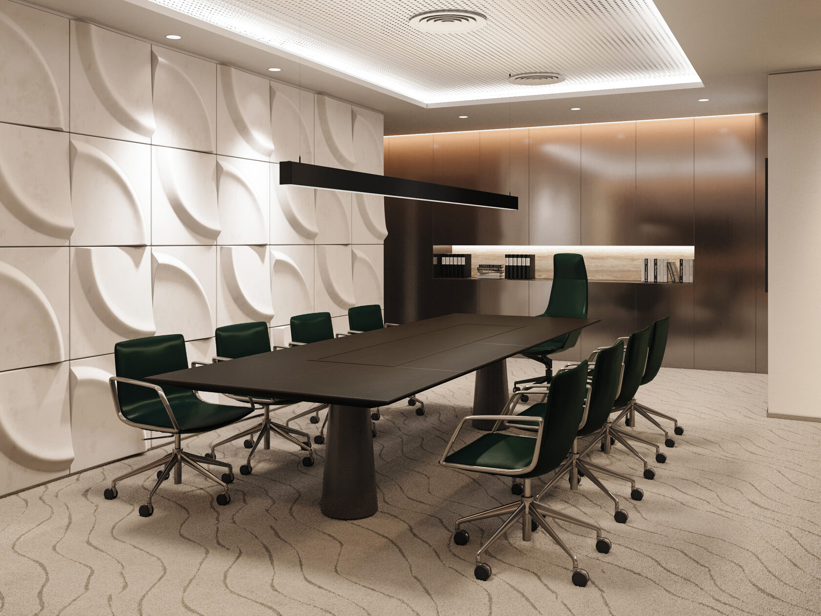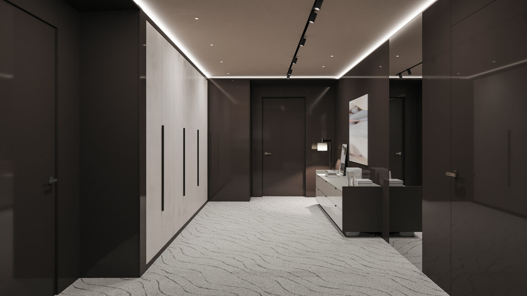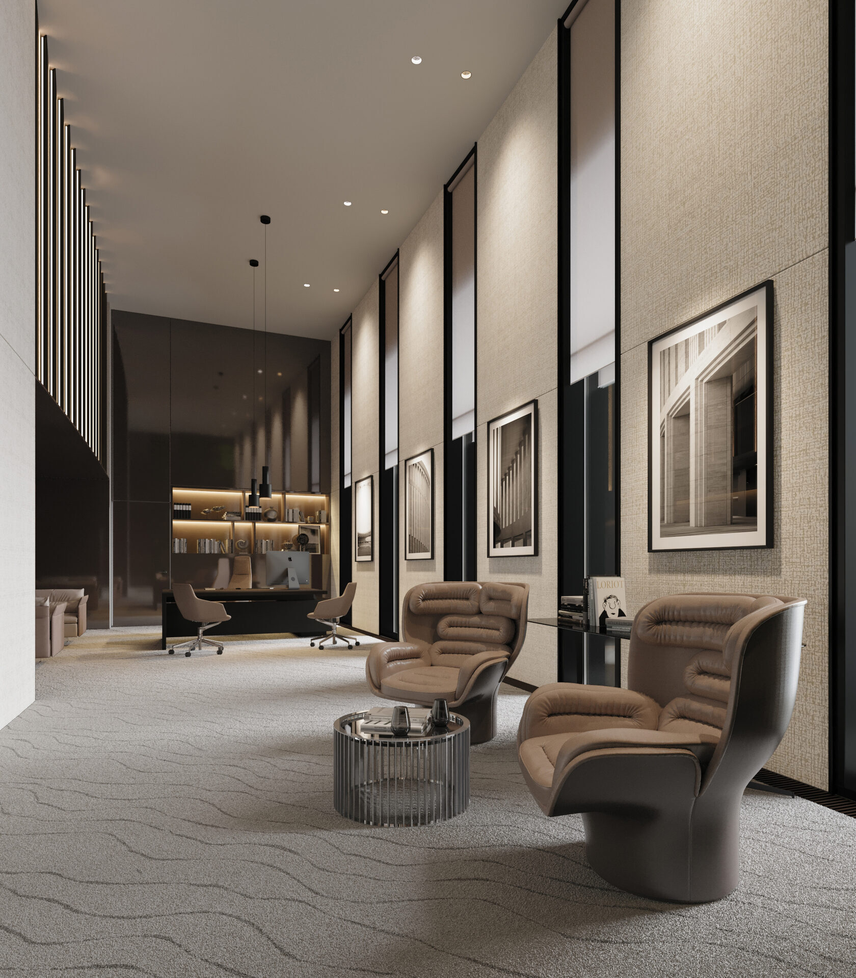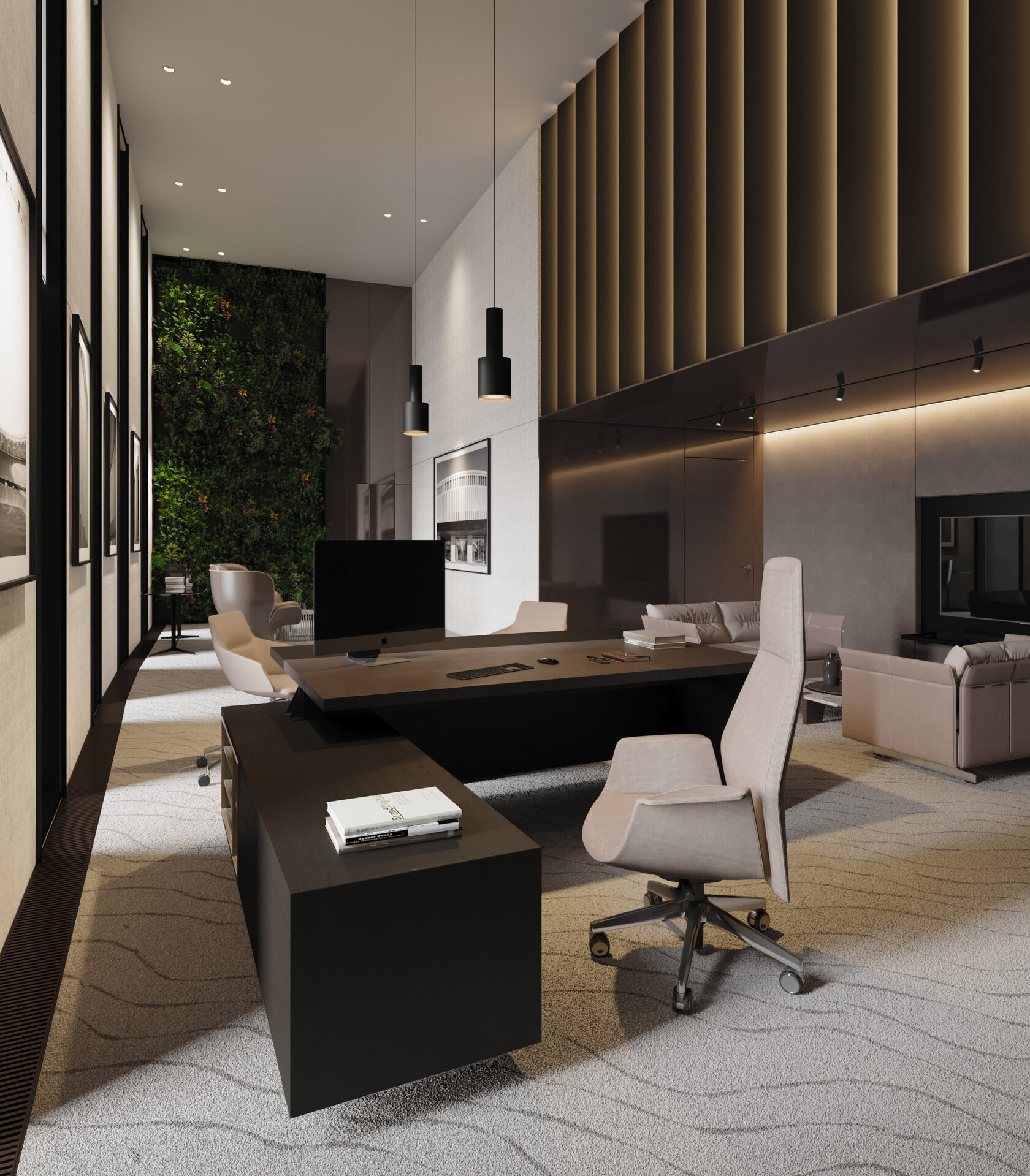Концепт офисного блока на стадионе Краснодар. В официальной зоне помимо приемной и кабинета руководителя была предусмотрена лаундж-зона, а также переговорная на 12 человек. Помимо этого офис обладает приватной частью - массажным кабинетом, зоной отдыха, просторным гардеробом, ванной комнатой и даже спальней. Напряженная работа предполагает качественный отдых.